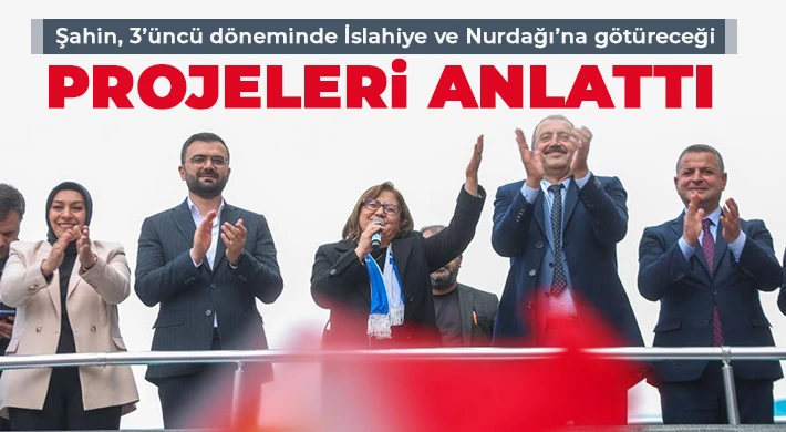 Öte yandan Nurdağı’ndaki millet bahçesi projesinin bir örneğini İslahiye’de yapmayı amaçlayan Şahin’in ilçede planladığı diğer projeler ise şöyle: Fevzi Paşa İçme Suyu Projesi, Köy yollarına sıcak asfalt çalışması, Huzurlu Yaylası Tabiat Parkı, Mandıra yapımı, sulama kanalları, afetzede çiftçilere mazot ve ekipman desteği.