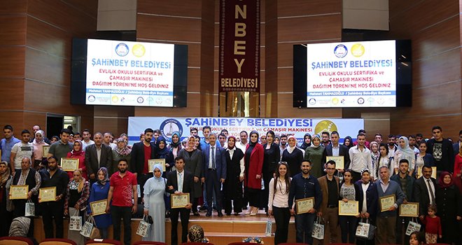 Şahinbey Belediye Başkanı Mehmet Tahmazoğlu, göreve geldiklerinde ilk uyguladıkları projelerinden birinin Evlilik Okulu olduğunu belirterek, “Evlilik insan hayatında en önemli dönüm noktalarından bir tanesi. Eş seçimi, bu dünyasını ve ahiretini kazanmak için çok önemli bir unsur. Bu nedenle Türkiye’de ilk defa 2009 yılında Evlilik Okulu’nu açtık. Göreve başladığımız ilk yılda, yaptığımız projelerin başında Evlilik Okulu ve Hoş geldin Bebek projemiz vardı. İki projeyi de istikrarlı bir şekilde katılımcılarını artırarak ve geliştirerek devam ettiriyoruz. Bu projemizde hedefimiz; mutlu aile, huzurlu toplum oluşturabilmek. Aile toplumumuzun temel çekirdek yapısını oluşturuyor. Aileyi ne kadar sağlam tutarsak, eşler arasındaki mutluluğu ne kadar arttırabilirsek, o zaman huzurlu bir toplumu elde etmiş oluyoruz. Çünkü terör ve suç örgütlerinin en çok musallat olduğu çocuklar, boşanmış ailelerin çocukları ve sahipsiz kalmış çocuklar. Bu nedenle çocuklarımıza, dünyamıza, geleceğimize ve ahiretimize sahip çıkmak adına aile yapısını çok güçlü tutmalıyız. Bu nedenle evlilik okulunu açtık. Beş kurum ile beraber bu projeyi sürdürüyoruz. Bu kursa katılan evlenecek çiftler ve evli olan çiftler verilen bilgilerden yararlandıklarını söylüyorlar. Ayrıca evlenecek çiftlerimiz düğün hediyesi olarak otomatik çamaşır makinası, evli olan çiftlerimize de kahve makinası hediye ediyoruz. Bunlar küçük hediye, esas hediye bu kurstan alınan bilgilerdir.” dedi.