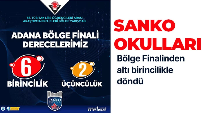 SANKO Okulları öğrencileri “55. Lise Öğrencileri Araştırma Projeleri Yarışması Bölge Finalleri”nde altı bölge birinciliği ve iki bölge üçüncülüğü kazanarak önemli başarıya imza attı.