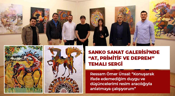 Ressam Ömer Ünsal, tuval ve deri üzerine yağlı boya ve karışık teknikler kullanarak yaptığı eserlerinden oluşan “At, Primitif ve Deprem” temalı resim sergisini, SANKO Sanat Galerisi’nde sanatseverlerle buluşturdu.