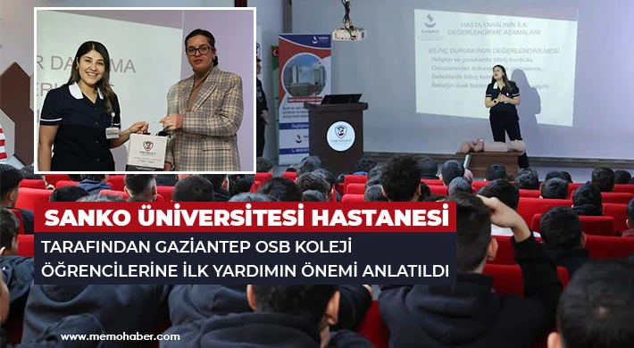 SANKO Üniversitesi Hastanesi İlk Yardım Eğitmeni Aslıhan Tabur tarafından, Gaziantep OSB Koleji öğrencilerine ilk yardım konusunda eğitim verildi.