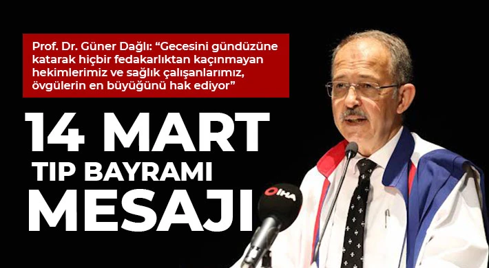 Prof. Dr. Dağlı, “İnsanı yaşatmayı ve insanlığa daha nitelikli bir yaşam sunmayı amaç edinen tüm hekimlerimizin ve sağlık çalışanlarımızın 14 Mart Tıp Bayramı’nı en içten dileklerimle kutluyor, başarılarının artarak devam etmesini diliyorum” diyerek mesajını tamamladı.