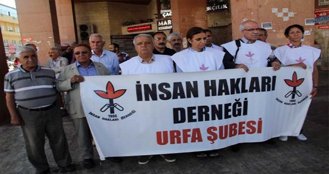 ŞANLIURFA'da, İnsan Hakları Derneği üyeleri Şırnak'ta çıkan çatışmada öldürülen Hacı Lokman Birlik'in cesedinin polis aracına bağlanarak sürüklenmesine basın açıklaması yaparak tepki gösterdi.