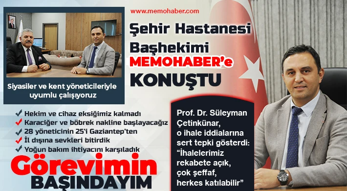 8 ay önce Cumhurbaşkanı Recep Tayyip Erdoğan tarafından hizmete açılan Türkiye’nin beşinci büyük şehir hastanesi olarak hizmete açılan Gaziantep Şehir Hastanesi Gaziantep’in yanı sıra deprem bölgesine de hitap ediyor. Açıldığı günden bu yana sürekli medyanın gündeminde olan hastaneyle ilgili olarak son günlerde de dikkat çekici iddialar yer alıyor. Görevden alındığı veya kısa süre içinde alınacağı yönünde iddialar ve “Siyasetçiler istemiyor”, “Adana’dan geldi, ekibini kurdu”, “ihaleleri şeffaf değil! şeklinde eleştiriler bulunan Hastanenin Başhekimi Prof. Dr. Süleyman Çetinkünar Memohaber Genel Yayın Yönetmeni Mehmet Taşçı’ya gündeme dair çarpıcı açıklamalarda bulundu.