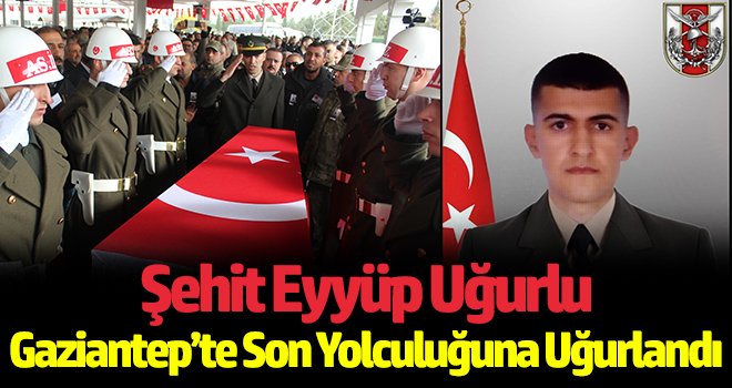 Eyyüp Uğurlu, Gaziantep Bahaeddin Nakıpoğlu Camii'nde öğle namazını müteakip il müftüsü Dr. Hüseyin Hazırlar'ın kıldırdığı cenaze namazının ardından son yolculuğuna uğurlandı. Küçük yaşta annesini kaybettiği öğrenilen şehidin cenaze namazı öncesi ve sonrası babası Celal Uğurlu, üvey annesi Fatma Uğurlu ve kardeşleri tabutunu öperek şehide veda etti.