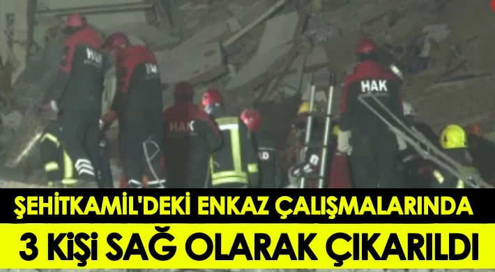 Şehitkamil'deki enkaz çalışmalarında 3 kişi sağ olarak çıkarıldı.