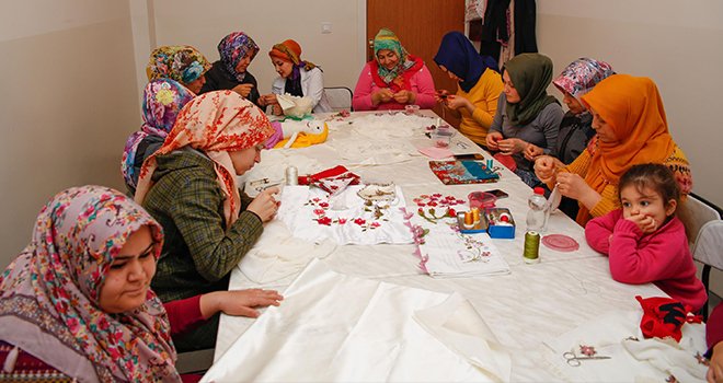 Çamlıtepe Aile Merkezinde açılan el sanatları kursuna katılan kadınlar, sağlanan imkanların kendilerini çok mutlu ettiğini ifade etti. Kurs ortamında kendilerini çok daha iyi hissettiklerini dile getiren kursiyerler, kursta çok keyifli zaman geçirdiklerini kaydetti.
