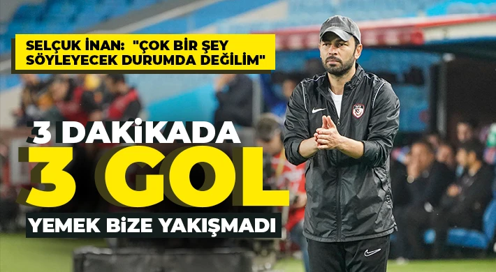 Gaziantep FK Teknik Direktörü Selçuk İnan, Trabzonspor maçının ardından yaptığı açıklamada çok fazla bir şey söyleyecek durumda olmadığını belirterek, böyle bir zamanda, bu şekilde kaybetmenin kendilerine yakışmadığını söyledi.