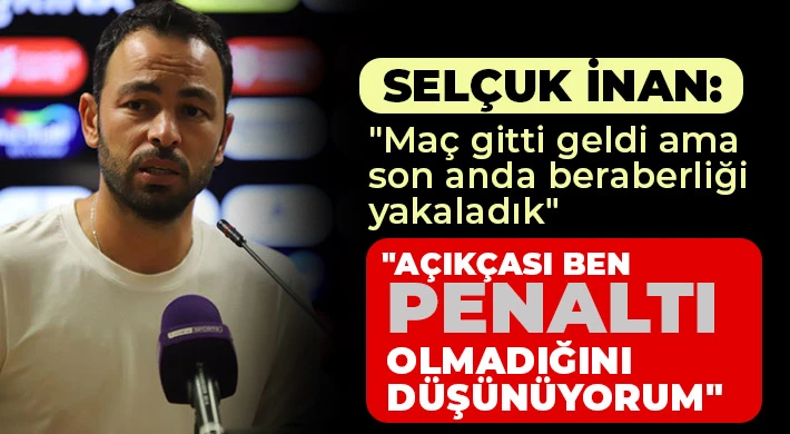 Maçta verilen penaltı kararının ağır olduğunu da ifade eden Selçuk İnan, "Bu tip penaltılar beni endişelendiriyor. Hakemlerimiz genç, yeni hakemler kazanmaya çalışılıyor ama fazla baskının da hakemleri geriye götüreceğini düşünüyorum. Ama bu tip hakemlerin takdir hakları rakipten yana oluyor. Bugün de aynısı oldu. Genç bir hakem vardı ama bugün kartları ve faulleri bizi oyundan düşürdü. Penaltı kararı çok ağırdı, açıkçası ben penaltı olmadığını düşünüyorum" şeklinde konuştu.