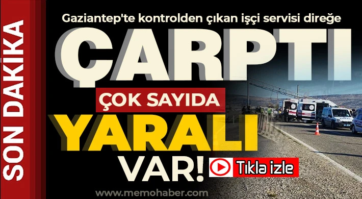 Gaziantep'in Yavuzeli ilçesinde kontrolden çıkan işçi servisi yol kenarındaki güvenlik kamerası direğine çarptı. Feci kazada işçi servisinde bulunan 16 kişi yaralandı. Serviste sıkışarak ağır yaralanan bir işçi ise dakikalar süren çalışmanın ardından kurtarıldı.