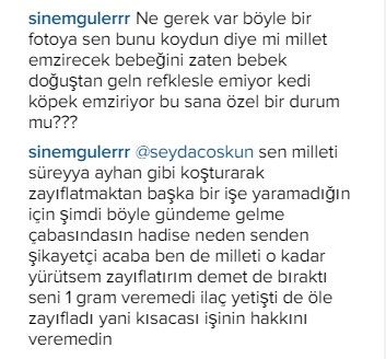 Coşkun, Instagram'da paylaştığı o kareye "Tam destek. Emzir sütün gelsin" notunu düştü.