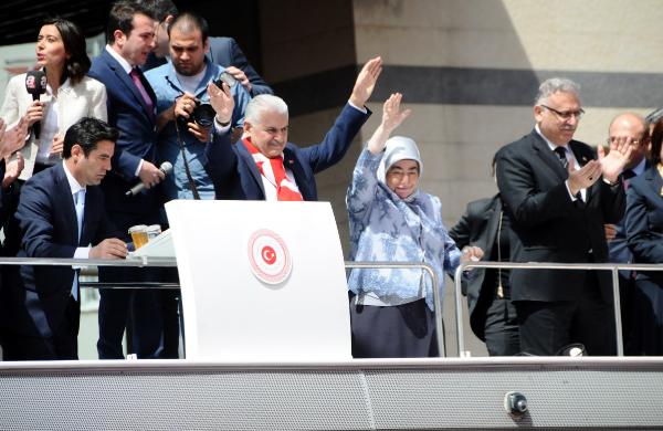 Başbakan Yıldırım konuşmasının son bölümünde alanda bulunan kadınlardan referandum için çalışmalarını istedi ve 'İyi gidiyoruz ama yetmez, daha çok çalışacağız. Bu halk oylaması geçmişte olduğu gibi sizin zaferiniz olacak. Ak partinin başarısında en büyük payı yine hanımlar alacak, bunu biliyoruz" dedi. Yıldırım, alanda bulunan erkeklere de "Siz de alınmayın, hanımlar olmaza bizim halimiz ne olacak? Onun için beraber çalışacağız, gayret edeceğiz" diye seslendi.