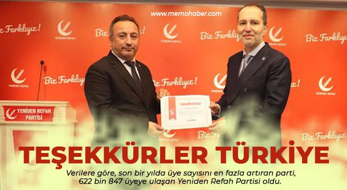 Yeniden Refah Partisi üye sayısını bir yıl içerisinde, 2024 Ocak - 2025 Ocak arasında, 365 binden 622 bine çıkartarak %70'lik bir artış gösterdi ve bir rekor daha kırdı.