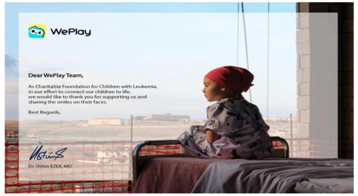30 Haziran’da, dünyanın önde gelen sosyal oyun platformlarından WePlay, lösemili çocukların tedavisine adanmış bir Türk hayır kurumuna 155 bin Türk Lirası bağışta bulundu.