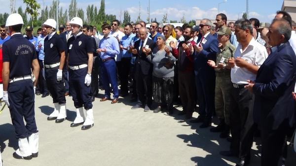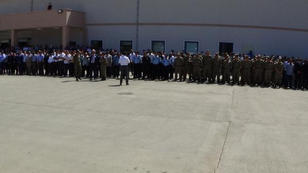ören boyunca abla Şenay Okuklu ile şehit polis memurunun ağabeyi Sadık Kurbanoğlu'nun ağıtları törene katılanları duygulandırdı. İl Müftüsü Cüneyt Kulaz'ın duası sonrası Olgun Kurbanoğlu'nun cenazesi ambulansla önce 5'inci Hudut Alay Komutanlığı'na götürüldü.