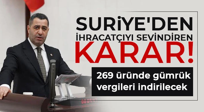 AK Parti Gaziantep Milletvekili Bünyamin Bozgeyik, Suriye hükümetinin Türkiye'den ithal edilen ürünlere uyguladığı gümrük vergilerinde indirim yapmasının ülke ekonomisi için çok önemli olduğuna dikkat çekti. Milletvekili Bozgeyik, Suriye'nin en büyük ticaret partnerinin Türkiye olduğunu belirterek, "Ticaret Bakanlığımız tarafından yapılan açıklamalara göre, Suriye'nin, Türkiye'nin ihraç ettiği, aralarında gıda, demir-çelik ve hijyen ürünlerinin de yer aldığı 269 ürünün gümrük vergisinde indirime gitme kararı alması bölgemiz ve ülkemiz ekonomisi için son derece sevindirici bir gelişmedir" dedi.