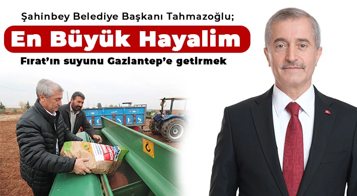 Şahinbey Belediye Başkanı Mehmet Tahmazoğlu yeni dönemde en büyük hayalinin Fırat’ın suyunu Gaziantep’e getirerek Şahinbeyli çiftçilerin su sıkıntısını ortadan kaldırmak olduğunu ifade etti.