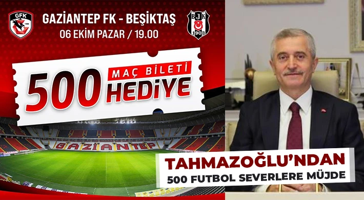 Gaziantep şehrinin Süper Lig’deki tek takımı Gaziantep Futbol Kulübü'ne destek olan Şahinbey Belediye Başkanı Mehmet Tahmazoğlu 500 futbol severe bilet müjdesi verdi.