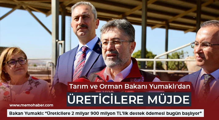 Tarım ve Orman Bakanı İbrahim Yumaklı, Gaziantep'te bulunan Avrupa Birliği onaylı hayvancılık tesisini ziyaret ederek, üreticilere 2 milyar 900 milyon TL'lik destek ödemesinin bugün başlayacağı müjdesini verdi.