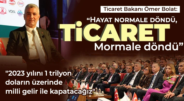 Ticaret Bakanı Ömer Bolat, Gaziantep'te katıldığı "Turkuaz Medya Buluşmaları-Türkiye İhracat Seferberliği" programında konuşarak, 2023 yılını 1 trilyon doların üzerinde milli gelir ile kapatacaklarını söyledi.