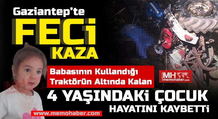 Gaziantep’te babasının kullandığı traktörün altında kalan 4 yaşındaki çocuk hayatını kaybetti.