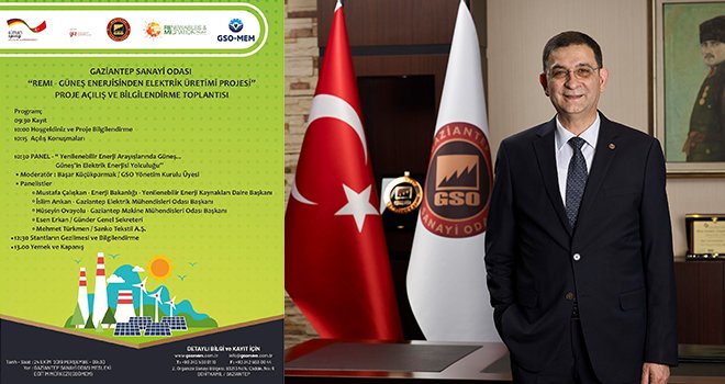 Gaziantep Sanayi Odası (GSO) tarafından, “Remi - Güneş Enerjisinden Elektrik Üretimi Projesi” kapsamında, 24 Ekim Perşembe günü saat 09.30’da GSO Mesleki eğitim Merkezi’nde (GSO-MEM) “Yenilenebilir Enerji Arayışlarında Güneş... Güneş’in Elektrik Enerjisi Yolculuğu” paneli gerçekleştirilecek.