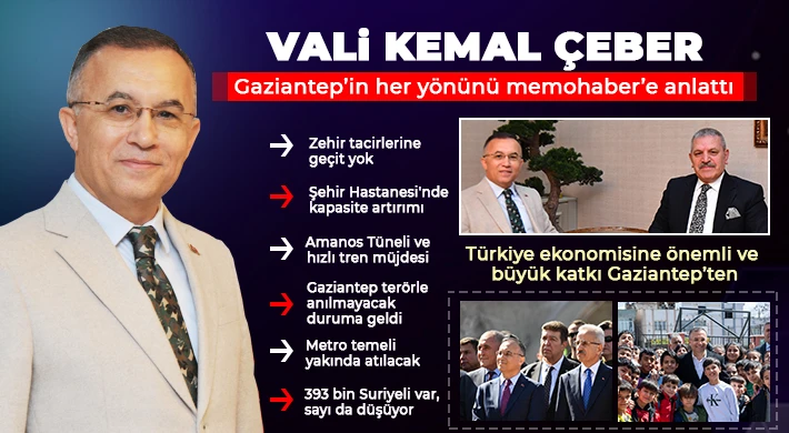Gaziantep Valisi Kemal Çeber, Memohaber Genel Yayın Yönetmeni Mehmet Taşçı'nın sorularını yanıtlayarak Gaziantep hakkında önemli açıklamalarda bulundu. Sanayiden asayiş olaylarına, yatırımlardan yeni projelere, sağlıktan ulaşıma ve son olarak sosyal olaylardan spora kadar her soruyu içtenlikle ve samimiyetle cevap verdi.