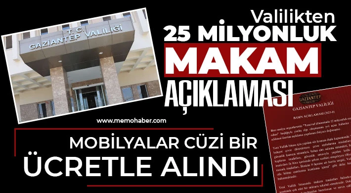 Gaziantep Valiliği, bazı basın organlarında yer alan ve Valiliğin yeni hizmet binasında 25 milyonluk mobilya kullanıldığı yönündeki iddiaları yalanladı.