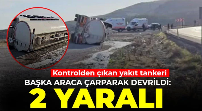 Kaza yaralanan 2 kişi hastaneye kaldırılırken tankerdeki yakıt ise yola aktı.