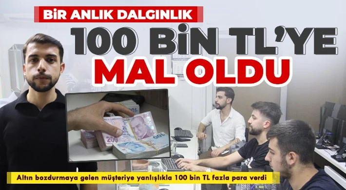 Gaziantep'te bir kuyumcuda yanlış hesaplama sonucu altın bozdurmaya gelen çifte 100 bin TL fazla ödeme yapıldı.