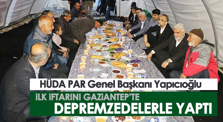 HÜDA PAR Genel Başkanı Zekeriya Yapıcıoğlu, Ramazan’ın ilk iftarını depremin en yoğun etkilediği bölgelerden Gaziantep’in Nurdağı ilçesinde vatandaşlarla yaptı.