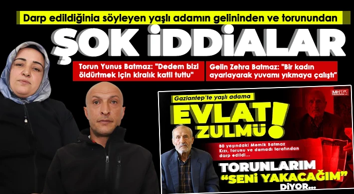 Gaziantep'te miras anlaşmazlığı nedeniyle darp edildiğini söyleyen 80 yaşındaki Memik Batmaz'ın iddialarının odağındaki torunu ve gelini şok edici yeni iddialarda bulundu.