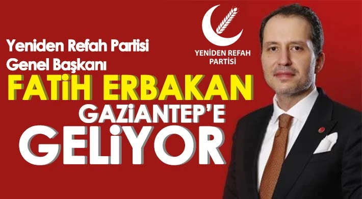 Yeniden Refah Partisi Genel Başkanı Fatih Erbakan'ın katılımıyla Gaziantep milletvekili aday tanıtım toplantısı yapılacak.