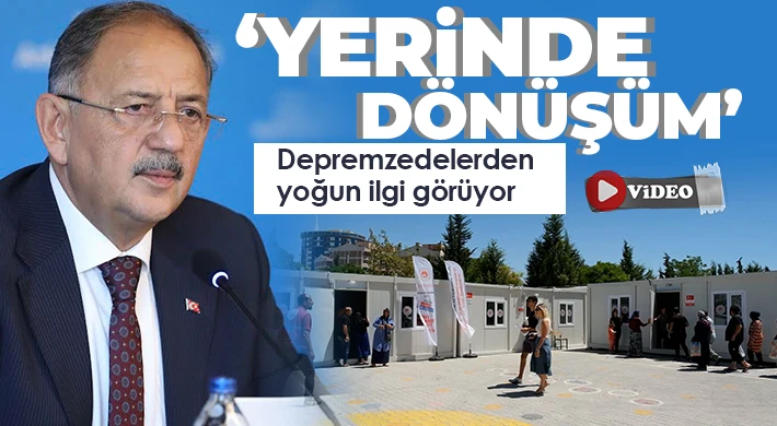 “Deprem bölgesinin bir an önce ihya ve inşasını sağlamak için Çevre, Şehircilik ve İklim Değişikliği Bakanlığınca 17 Temmuz’da başlatılan ‘Yerinde Dönüşüm’ projesi afetzedeleri sevince boğdu. ‘Yerinde Dönüşüm’ ile ev ve işyerlerini Bakanlığın denetiminde yerinde yapma fırsatına kavuşan depremzedeler, 500 bin lira hibe ve 800 bin liraya kadar da kredi desteği sağlayan projeye büyük ilgi gösterdi.