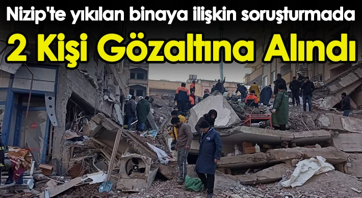 Kahramanmaraş merkezli 7,7 ve 7,6'lık deprem sonrası Nizip ilçesinde yıkılan bir binaya ilişkin soruşturma kapsamında, 2 kişi gözaltına alındı.