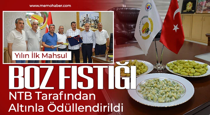 Bölgemizin en önemli tarım ürünlerinin başında gelen Antep fıstığında yılın ilk ürünü yetiştirildi. Hasat mevsiminden önce doğal rengine ve tadına kavuşan ilk ürün boz fıstığı yetiştiren çiftçi Abdurrahman Açıkgöz, Nizip Ticaret Borsası (NTB) tarafından Yönetim Kurulu Üyeleri ve Meclis Üyelerinin katıldığı törenle tam altınla ödüllendirildi.