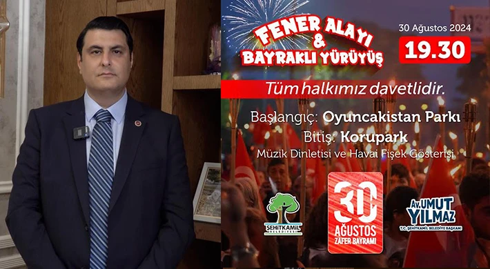 Şehitkamil Belediye Başkanı Umut Yılmaz, bugün 30 Ağustos kutlamalarında Atatürk’ün yok sayılmasına tepki göstererek, tüm Gazianteplileri saat 19.30’da başlayacak fener alayına davet etti. Yılmaz, “Tüm hemşehrilerimizi Atatürk’e ve onun emaneti Cumhuriyetimize sahip çıkmaya davet ediyorum” dedi.