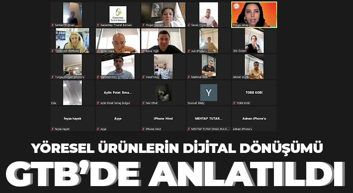 Türkiye Odalar Borsalar Birliği (TOBB) ve Hepsiburada iş birliğiyle yürütülen, “HepsiTürkiye’den Yöresel Ürünlerin Dijital Dönüşümü” programı kapsamında, Gaziantep Ticaret Borsası (GTB) tarafından girişimcilere ve işletmelere yönelik online bilgilendirme toplantısı düzenlendi.