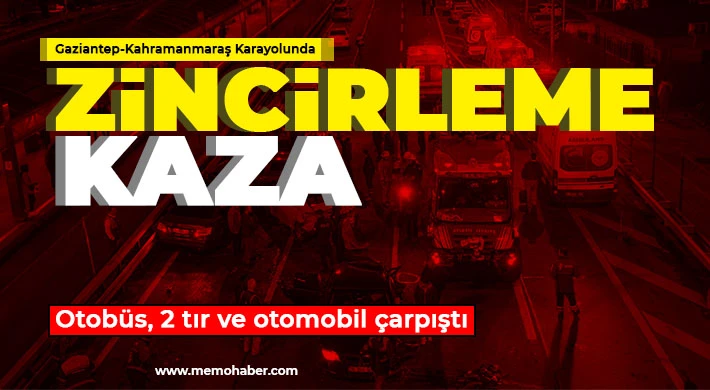 Gaziantep-Kahramanmaraş Karayolunun Aktoprak mevkiinde meydana gelen kazada, belediye otobüsü kaza yaptı. Ardından gelen 2 tır ve bir otomobil de kazaya karıştı. Karayolunun trafiğe kapandığı kazayı görenler durumu 112 Acil Yardım Hattına bildirdi. İhbar üzerine olay yerine polis, itfaiye ve sağlık ekipleri sevk edildi.